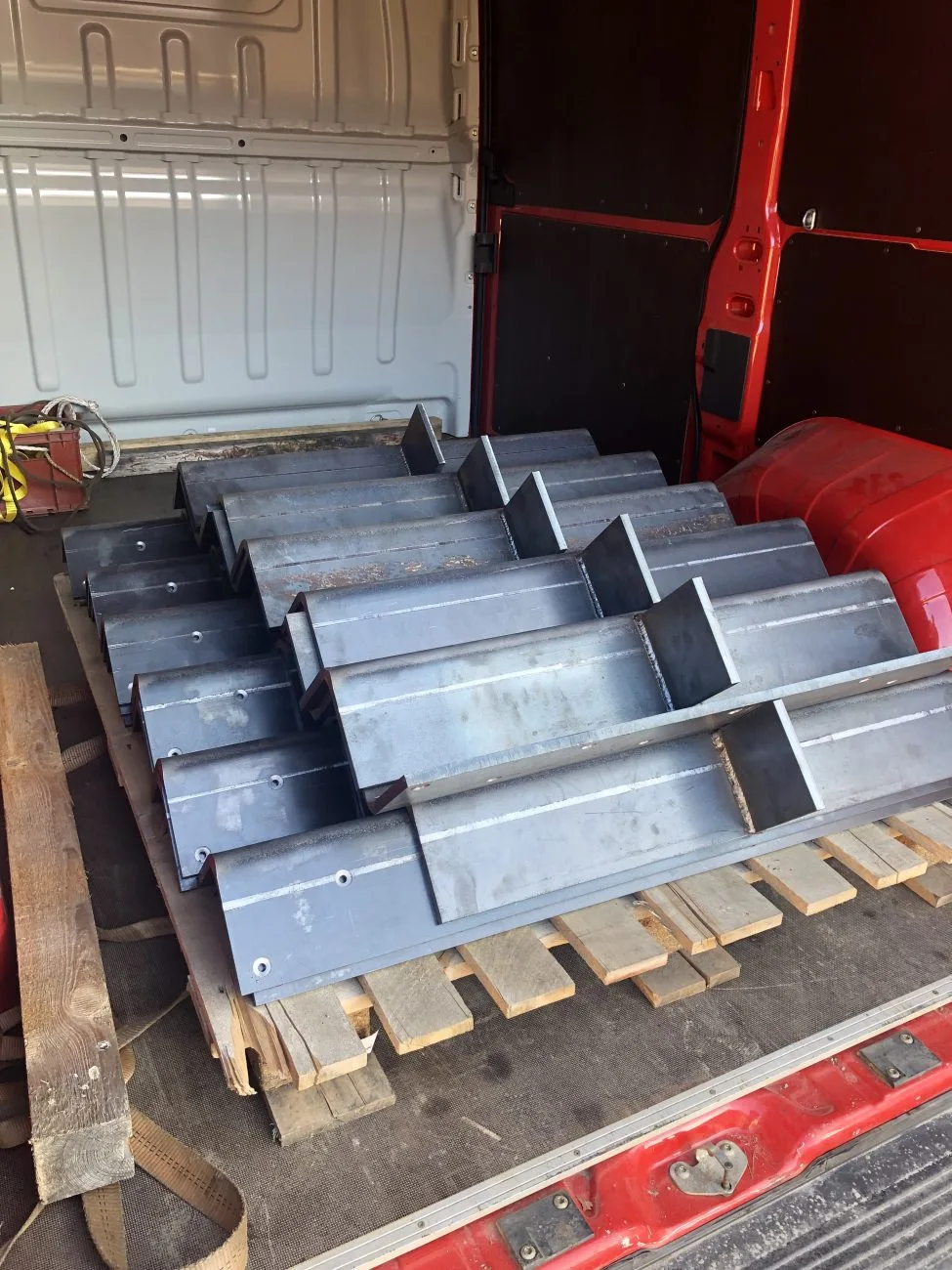 Výroba kovových ochranných rohů pro přepravní dřevěné bedny.
